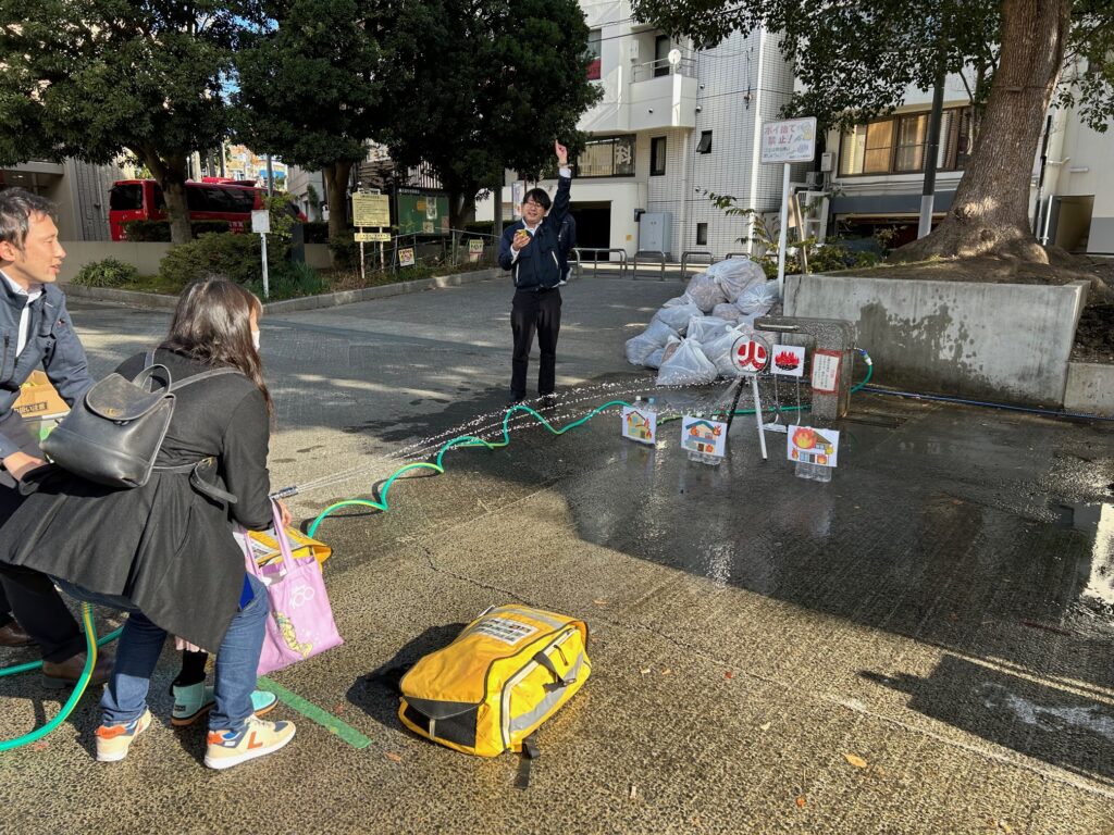 2024年12月7日土曜日、横浜駅にも近い横浜市民防災センター主催のイベント『クリスマス防災フェア』に参加させていただきました。お取引先の株式会社渡辺武商店様のご厚意で、一般の方たちにも昨今多発するリチウムイオンバッテリー製品の発火の危険性とともに、その火災は一般の消火器では消えにくい事実を知っていただこうという試みです。