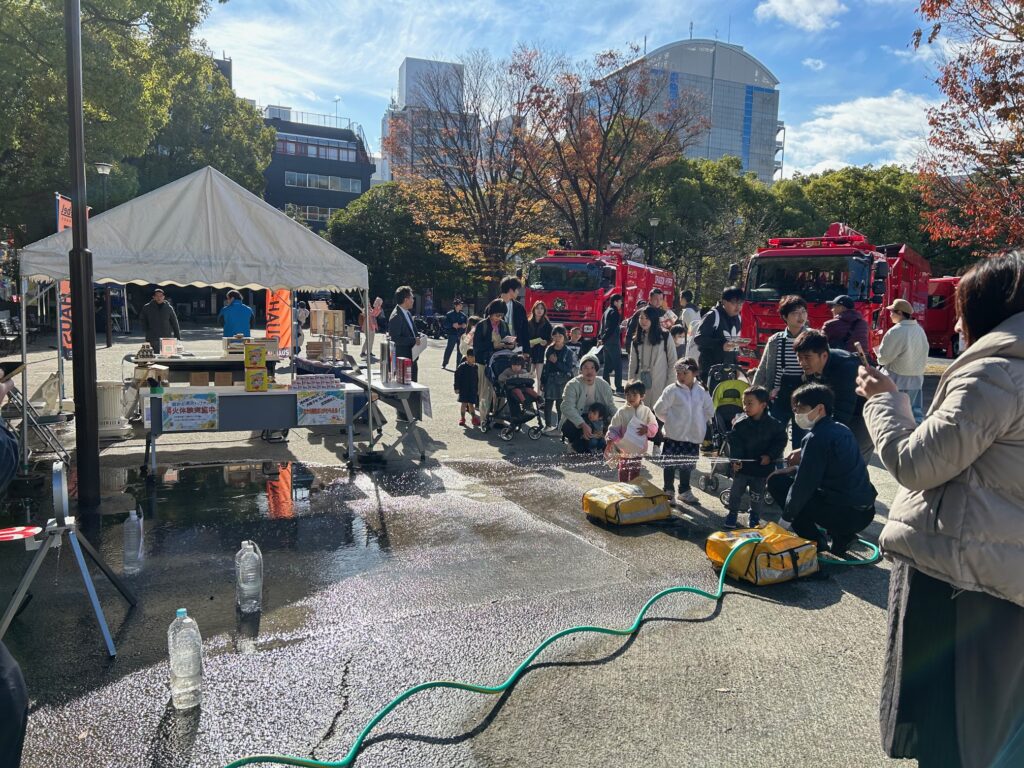 トミカの消防車がもらえるお子様向けの放水イベントも大好評で、たくさんのお子様たちにご参加いただけました。